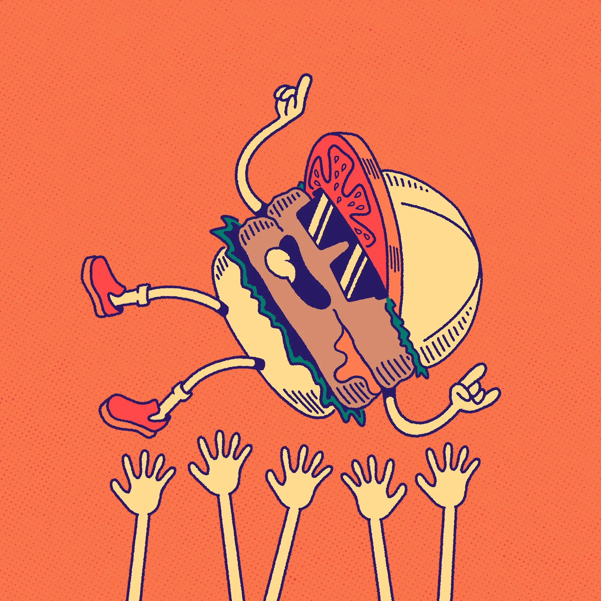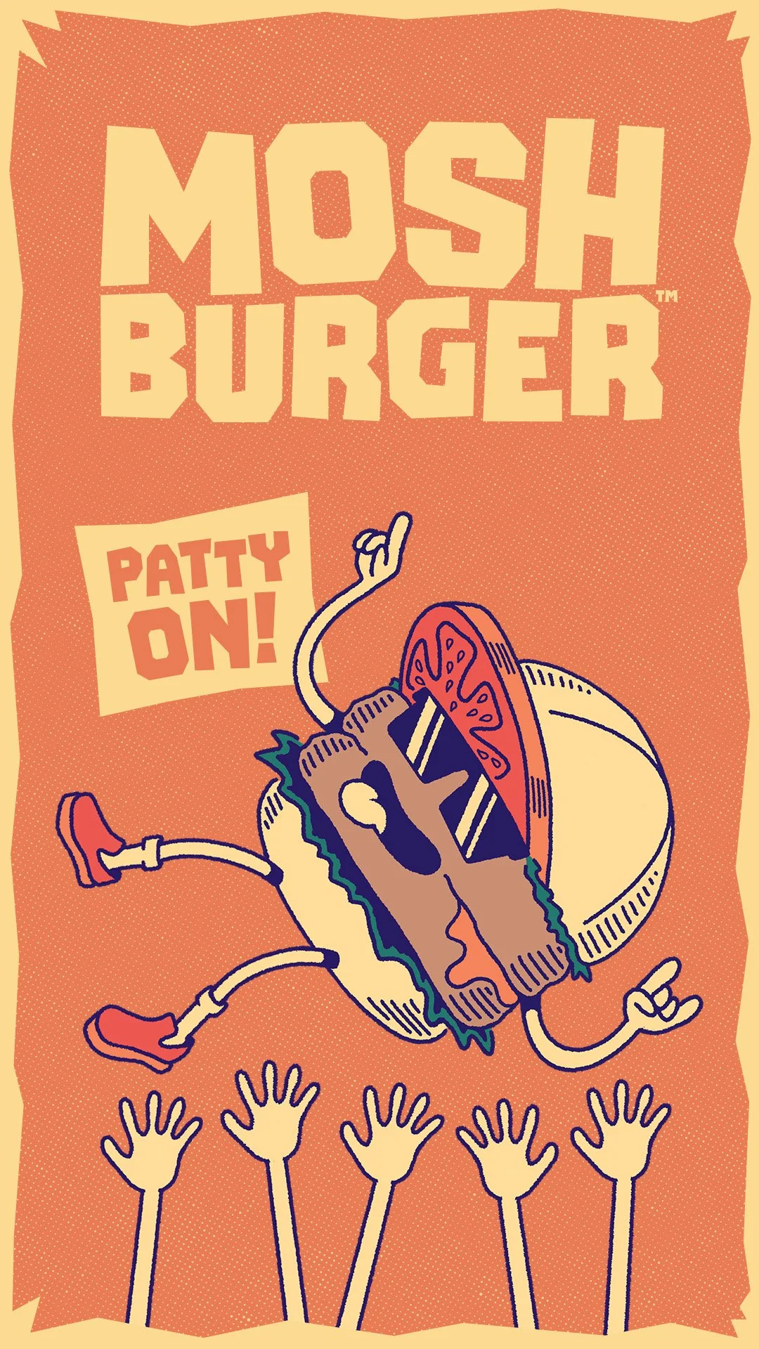 I built the Mosh Burger brand, mascot, and visual system entirely solo, pulling in punk references I grew up with—checkerboard patterns, halftone dots, and a chill lil’ mascot dude—to create something I’d genuinely want to eat at.
